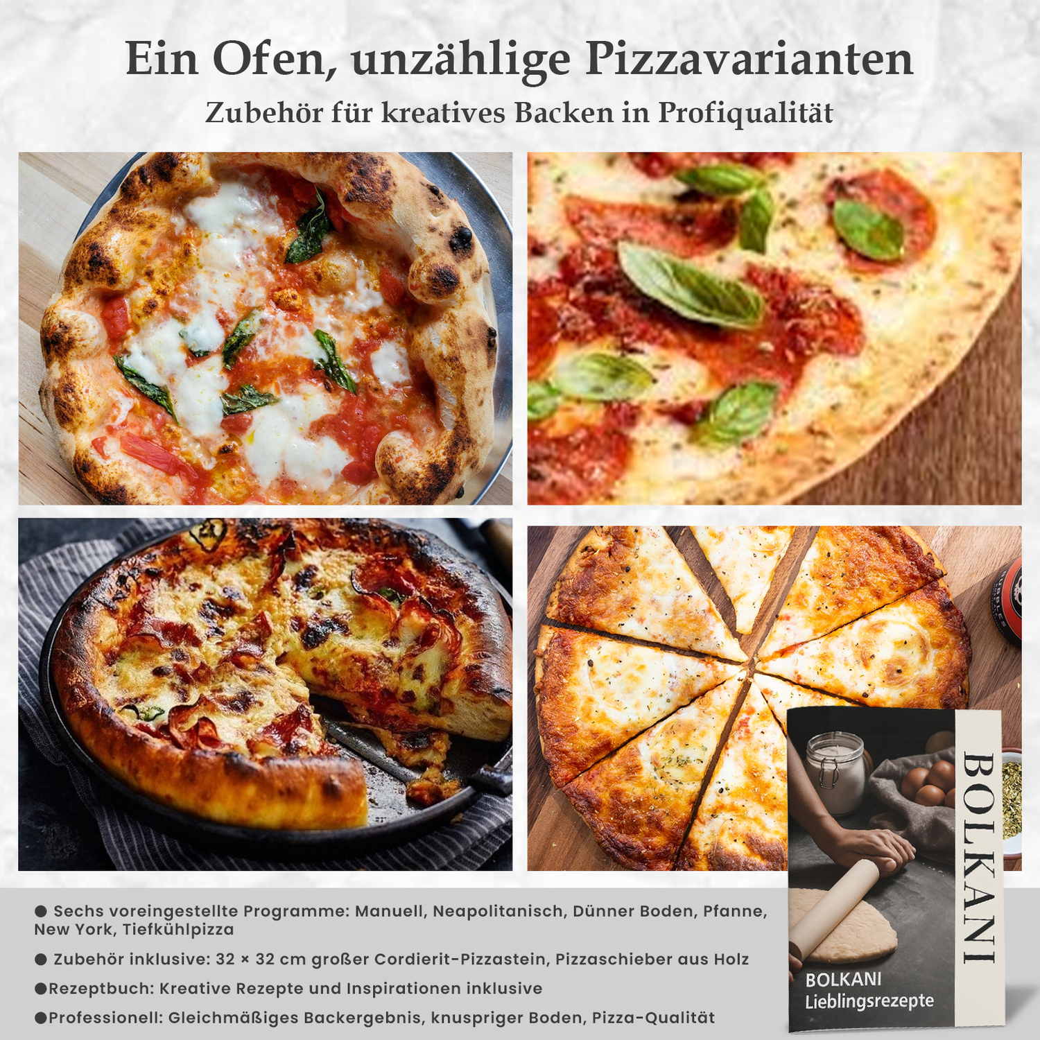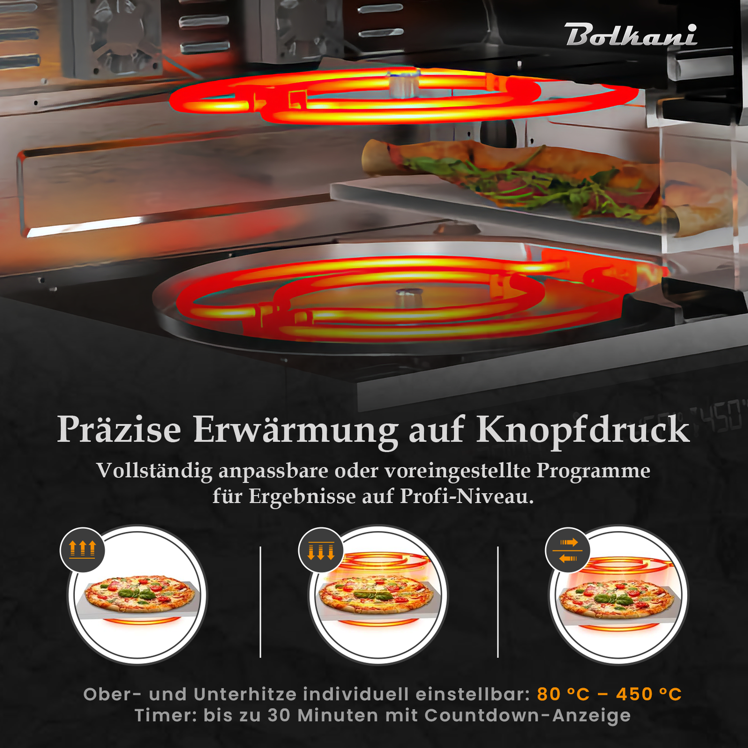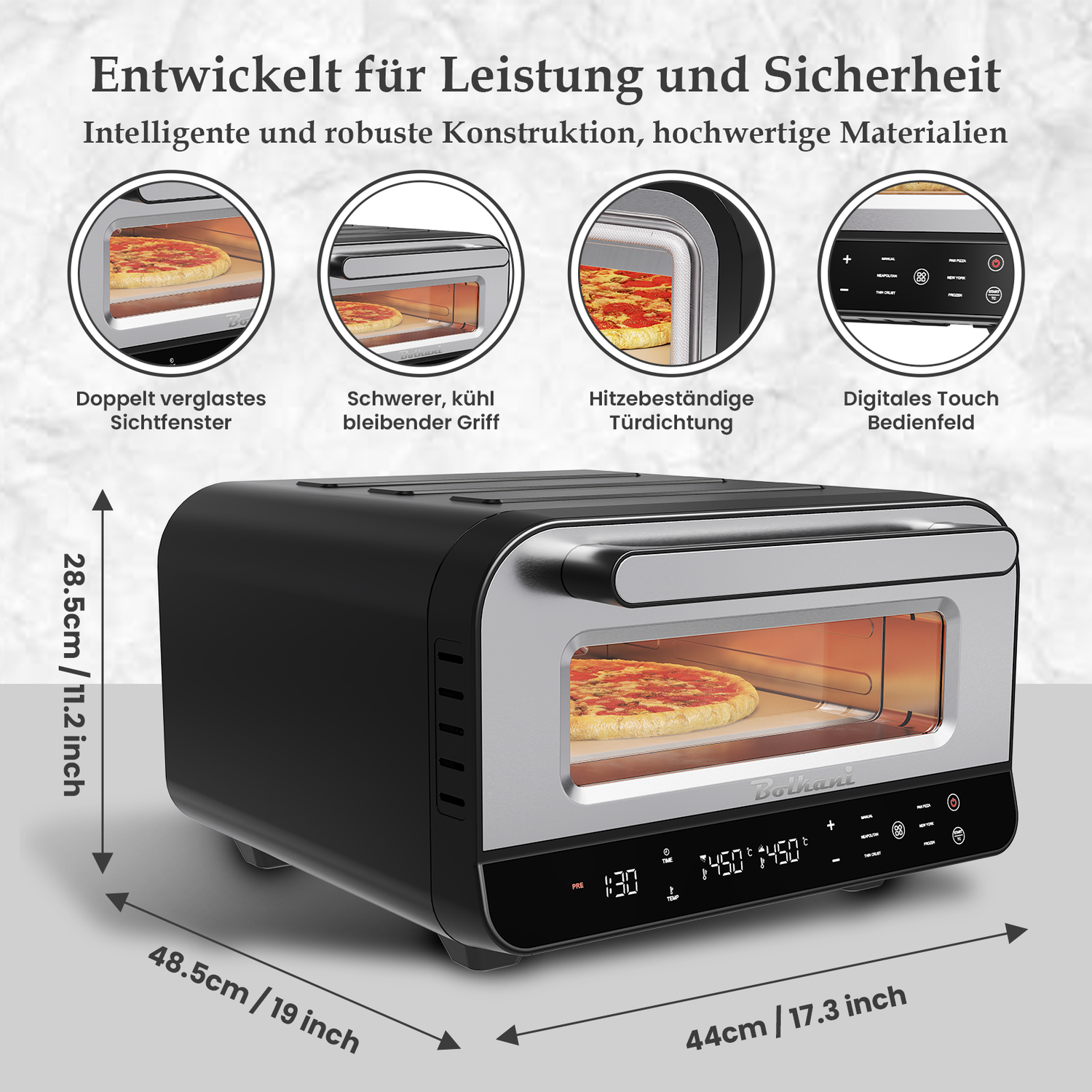 BOLKANI Electric Pizza Oven up to 450°C with Pizza Stone & Pizza Peel