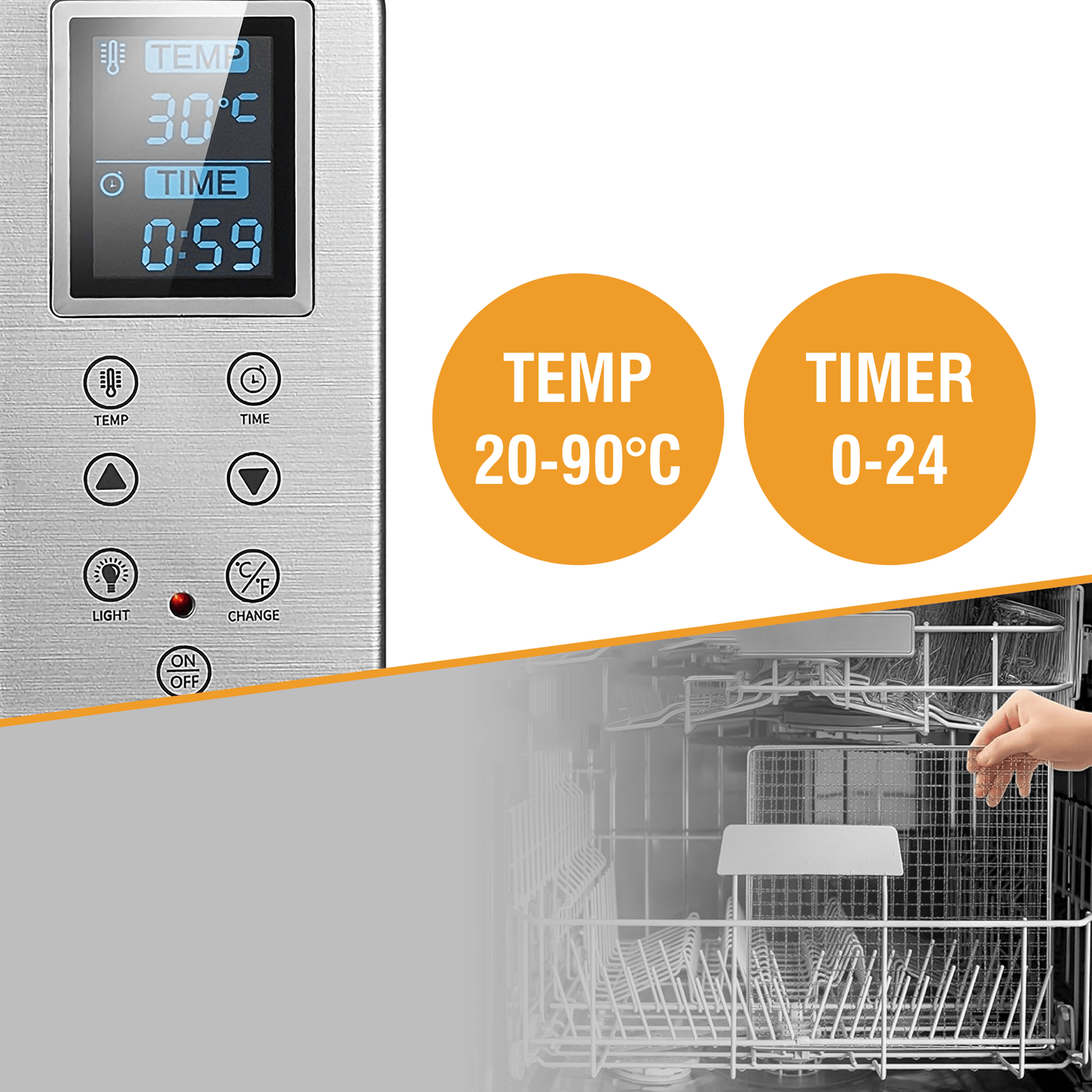 • Präzise Steuerung & Timer: Temperatur 20–90 °C und Timer bis 24 h für volle Kontrolle. Das LED-Display mit automatischer Abschaltung sorgt für Sicherheit und konstante Ergebnisse.
