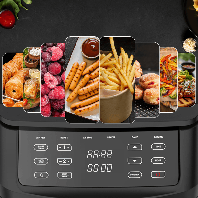 6-in-1 Double stack Heißluftfritteuse doppelter Platz, doppelter Genuss.